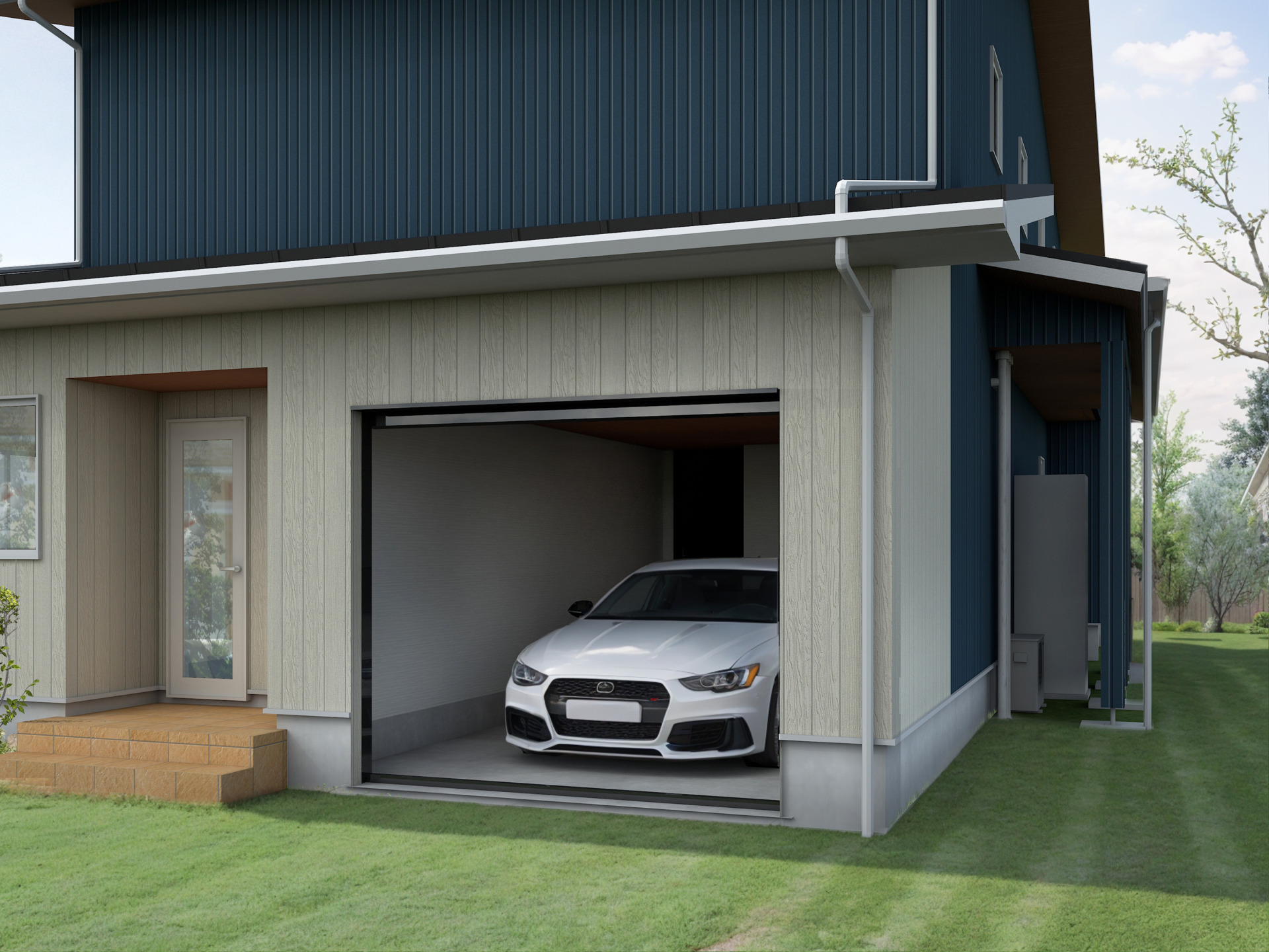 海が近いことによるデメリット「塩害」対策として、ビルトインガレージを設けました。
