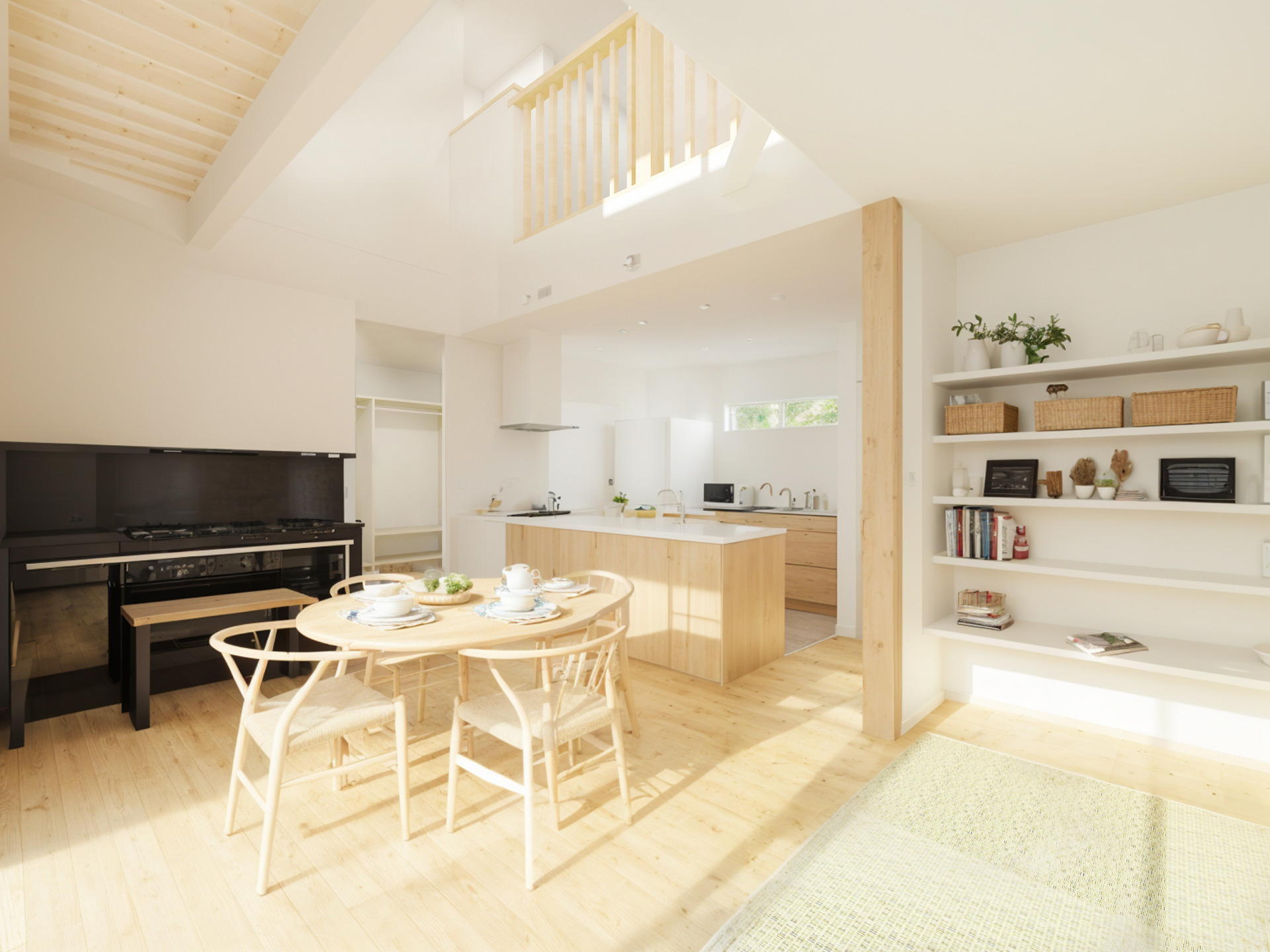 アレルギーへの配慮と家族が気持ちよく過ごせる様に、自然素材の壁紙や無垢材のフローリングを採用しました。
