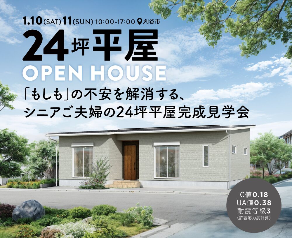 刈谷市で、「もしも」の不安を解消する、シニアご夫婦の24坪平屋の完成見学会を開催します。