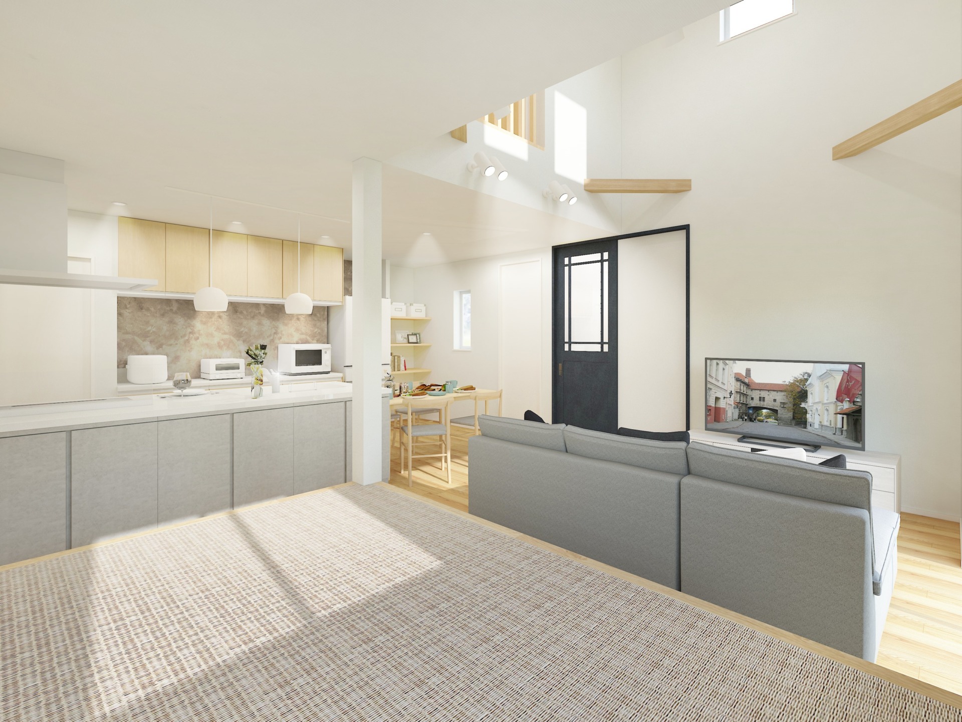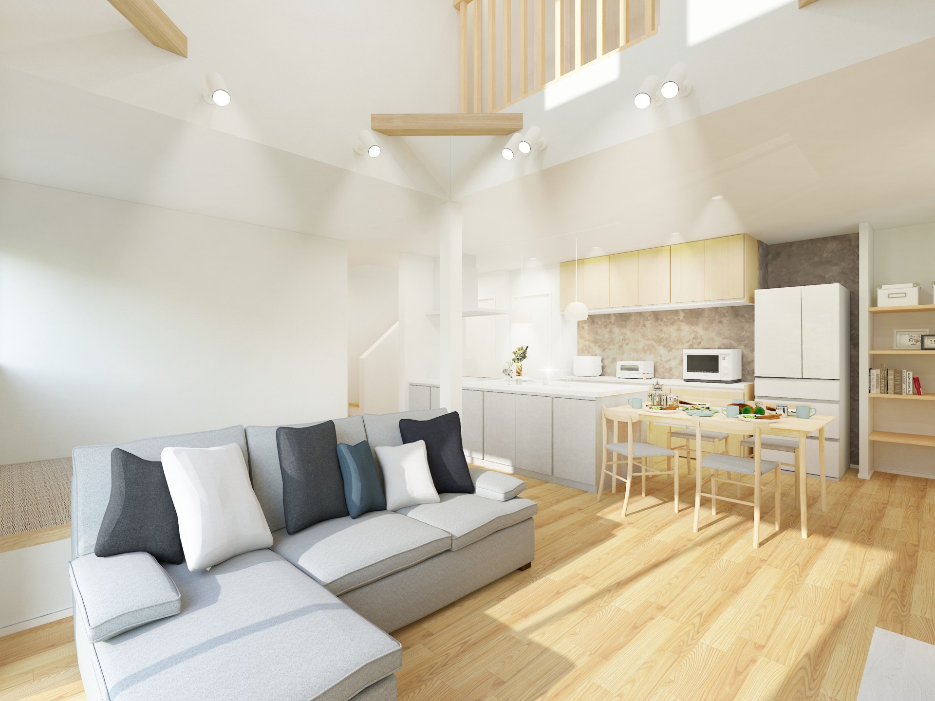 LDKには小上がりの畳コーナーがあり、お子様の昼寝や遊び場としてだけでなく、老後は寝室として平屋のように暮らすこともできます。