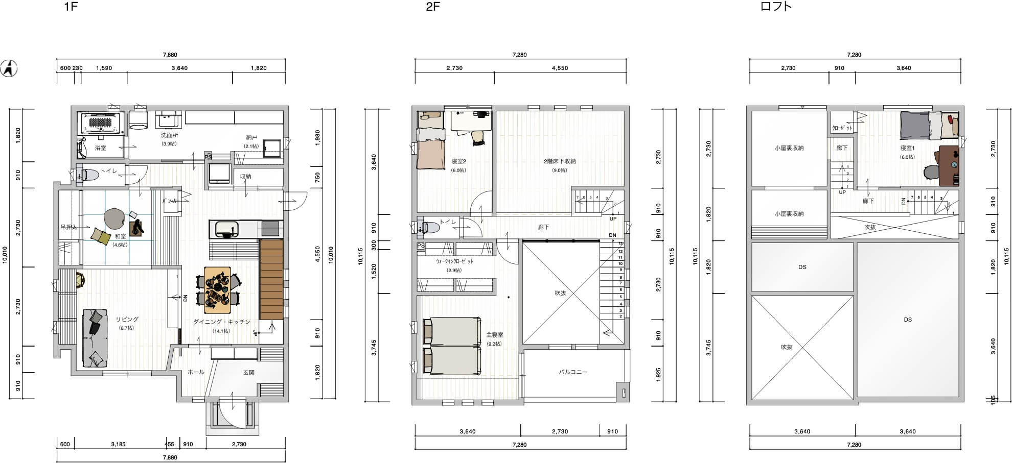 縦の空間を最大限活かした設計により、狭さを感じさせず、通常より10坪以上広く使えるのが大きな魅力。